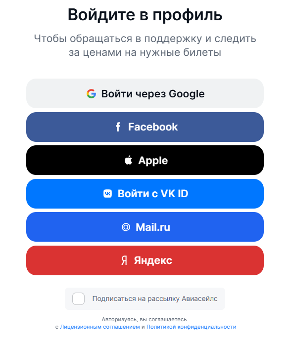 - региональные данные: страну, валюту, способ оплаты, гражданство и город проживания. Они нужны для того, чтобы мы показывали вам больше билетов от местных перевозчиков и предупреждали о правилах въезда в разные страны.